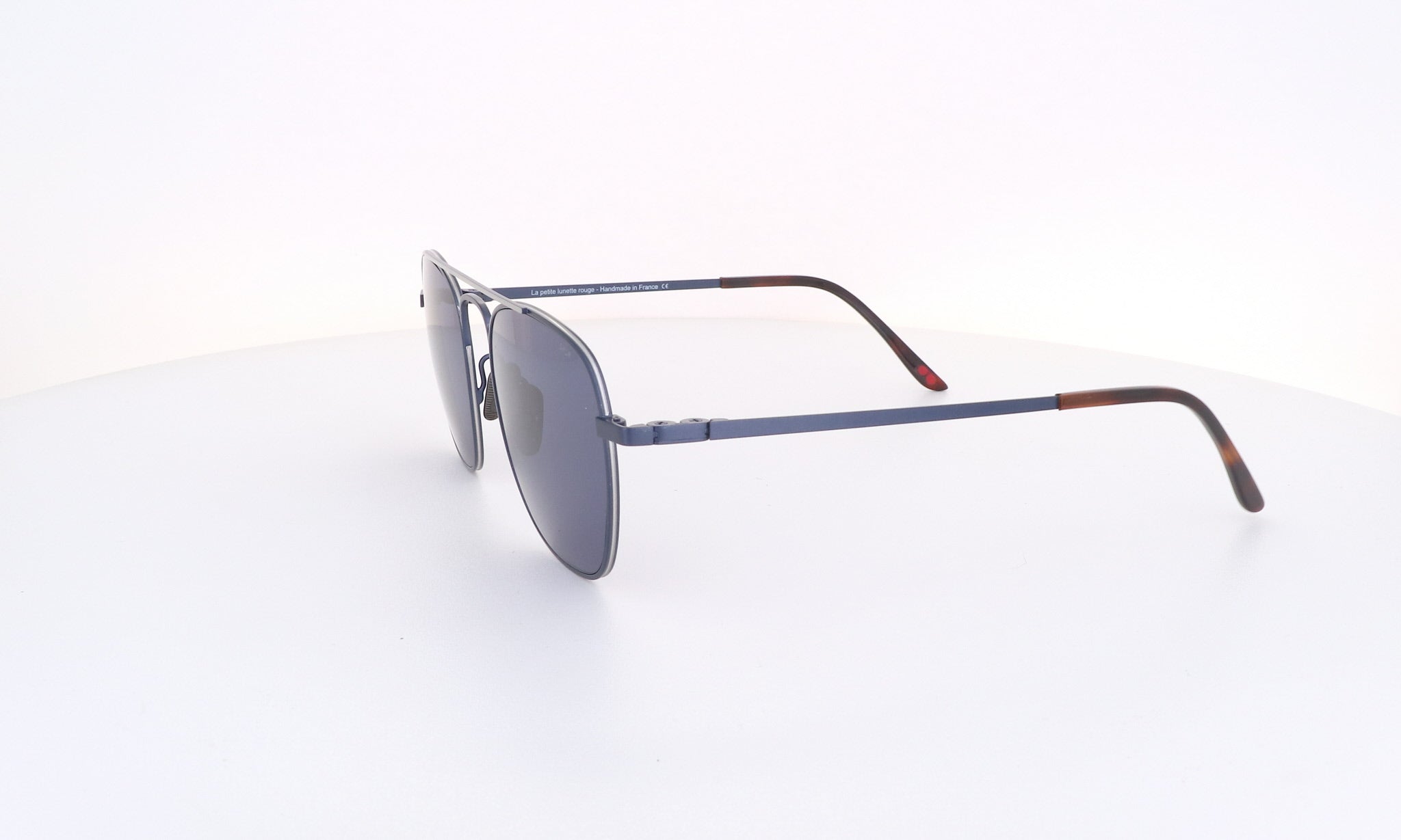 Alison and Hilarhi took inspiration from the popular 1980s clip-on sunglasses, adding a double bridge featuring a red line across all frames, their signature design. The collection is exclusively handmade in France.