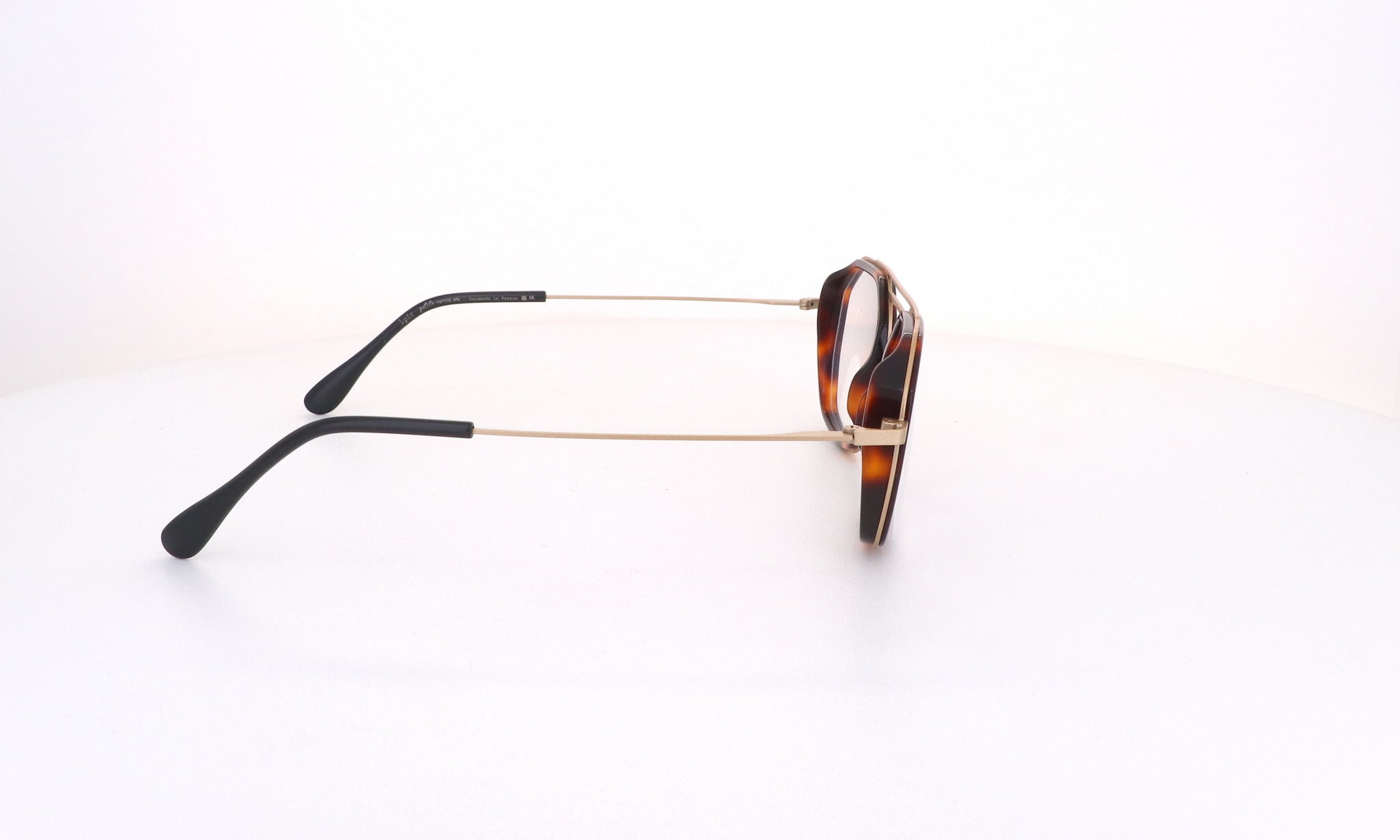 Alison and Hilarhi took inspiration from the popular 1980s clip-on sunglasses, adding a double bridge featuring a red line across all frames, their signature design. The collection is exclusively handmade in France.